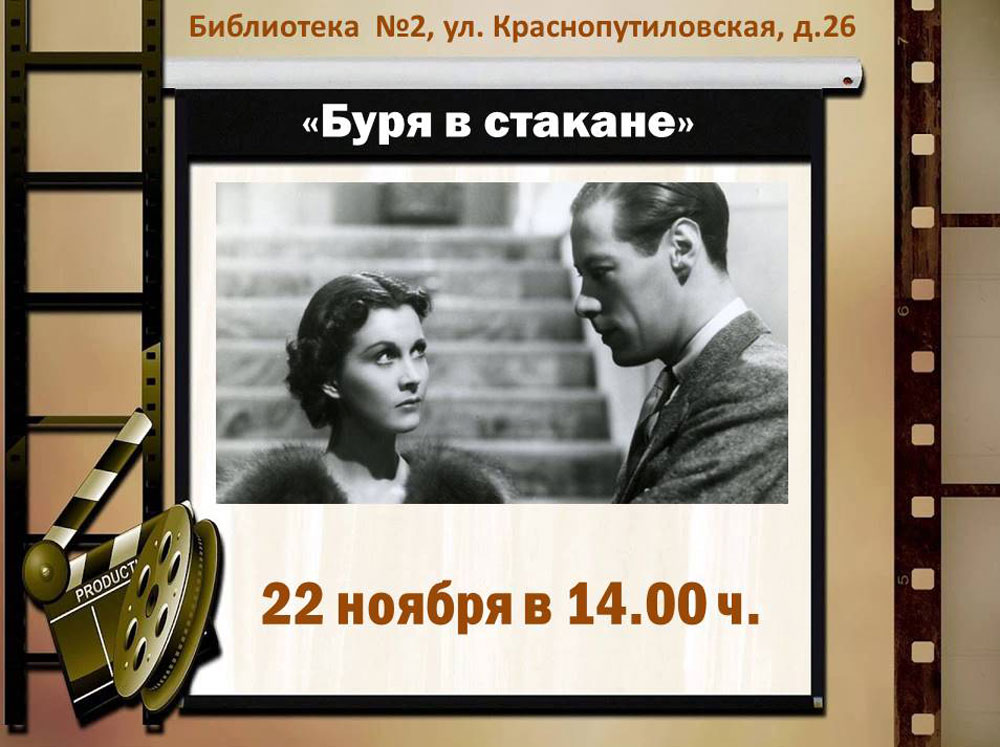 Библиотека №2 приглашает на показ мелодрамы "Буря в стакане воды" (Великобритания, 1937) в рамках Киноклуба "Ретрокино".