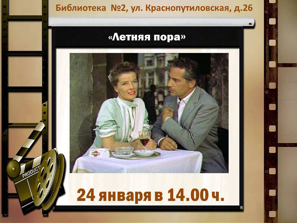 Библиотека №2 приглашает на показ мелодрамы "Летняя пора" (Великобритания, 1955) в рамках Киноклуба "Ретрокино".