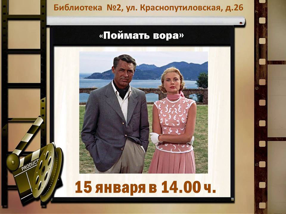 15 января 2024 года в 14.00 в Библиотеке №2 в рамках Киноклуба "Ретрокино" состоится показ комедии "Поймать вора" (США, 1954).
