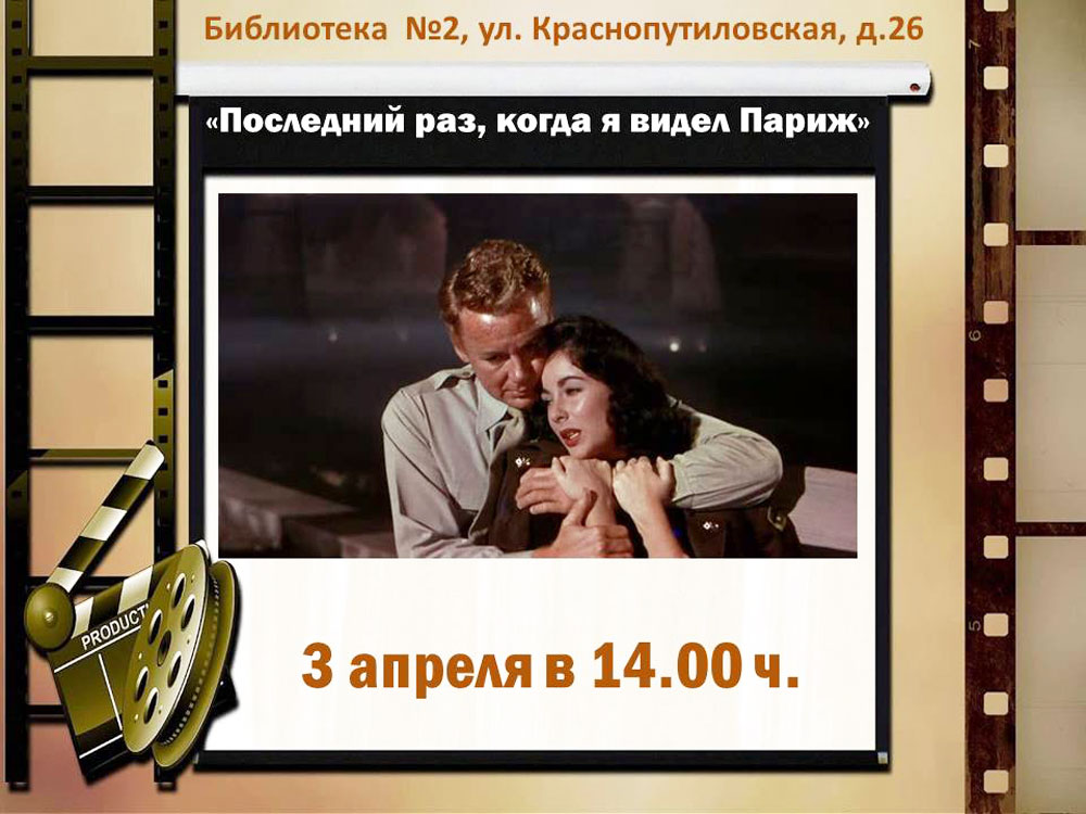 Библиотека №2 приглашает на показ драмы "Последний раз, когда я видел Париж" (США, 1954) в рамках Киноклуба "Ретрокино".