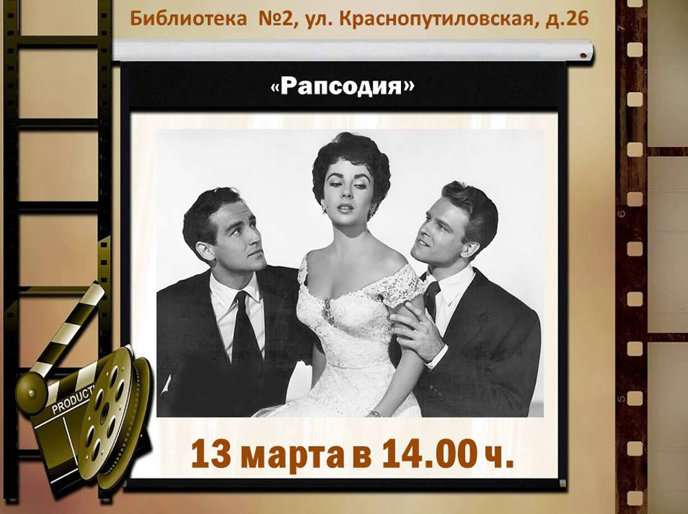 Библиотека №2 приглашает на показ мелодрамы "Рапсодия" (США, 1954) в рамках Киноклуба "Ретрокино".