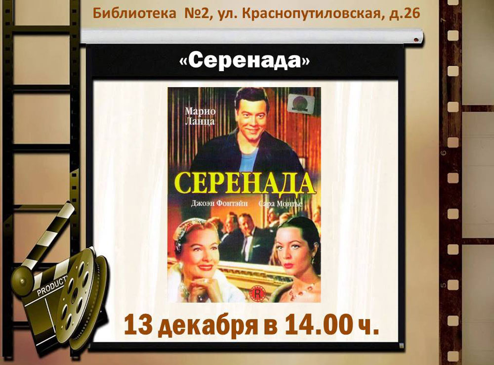 Библиотека №2 приглашает на показ мелодрамы "Серенада" (США, 1956) в рамках Киноклуба "Ретрокино".