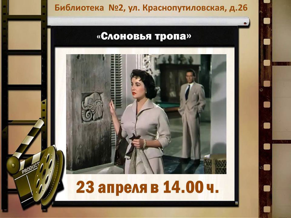 23 апреля 2025 года в 14.00 в Библиотеке №2 в рамках Киноклуба "Ретрокино" состоится показ драмы "Слоновья тропа" (США, 1954).