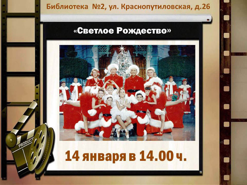 14 января 2026 года в 14.00 в Библиотеке №2 в рамках Киноклуба "Ретрокино" состоится показ мюзикла "Светлое Рождество" (США, 1954).