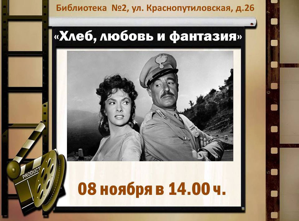 Библиотека №2 приглашает на показ комедии "Хлеб, любовь и фантазия" (Италия, 1953) в рамках Киноклуба "Ретрокино".