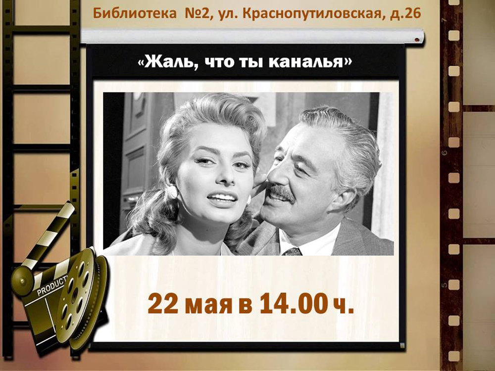 Библиотека №2 приглашает на показ комедии "Жаль, что ты каналья" (Италия, 1954) в рамках Киноклуба "Ретрокино".
