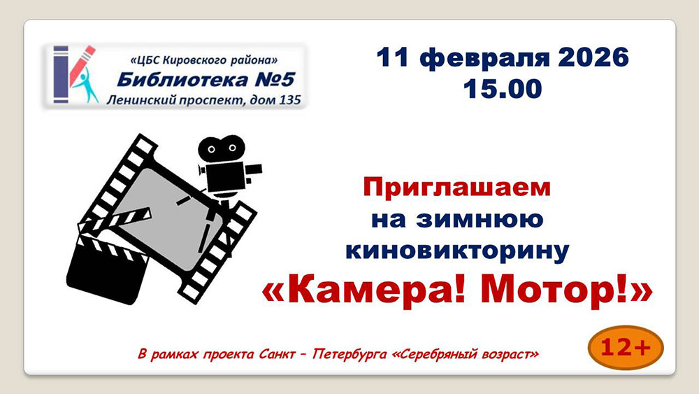 В рамках проекта Санкт-Петербурга "Серебряный возраст" состоится зимняя Киновикторина "Камера! Мотор!".