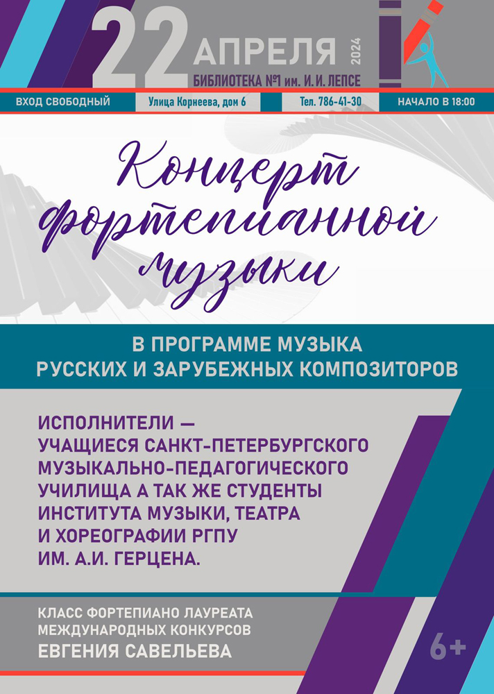 Библиотека №1 им. И. И. Лепсе приглашает на Концерт фортепианной музыки.