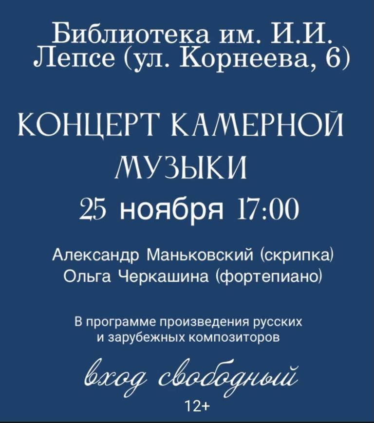 Библиотека №1 приглашает на Концерт камерной музыки.