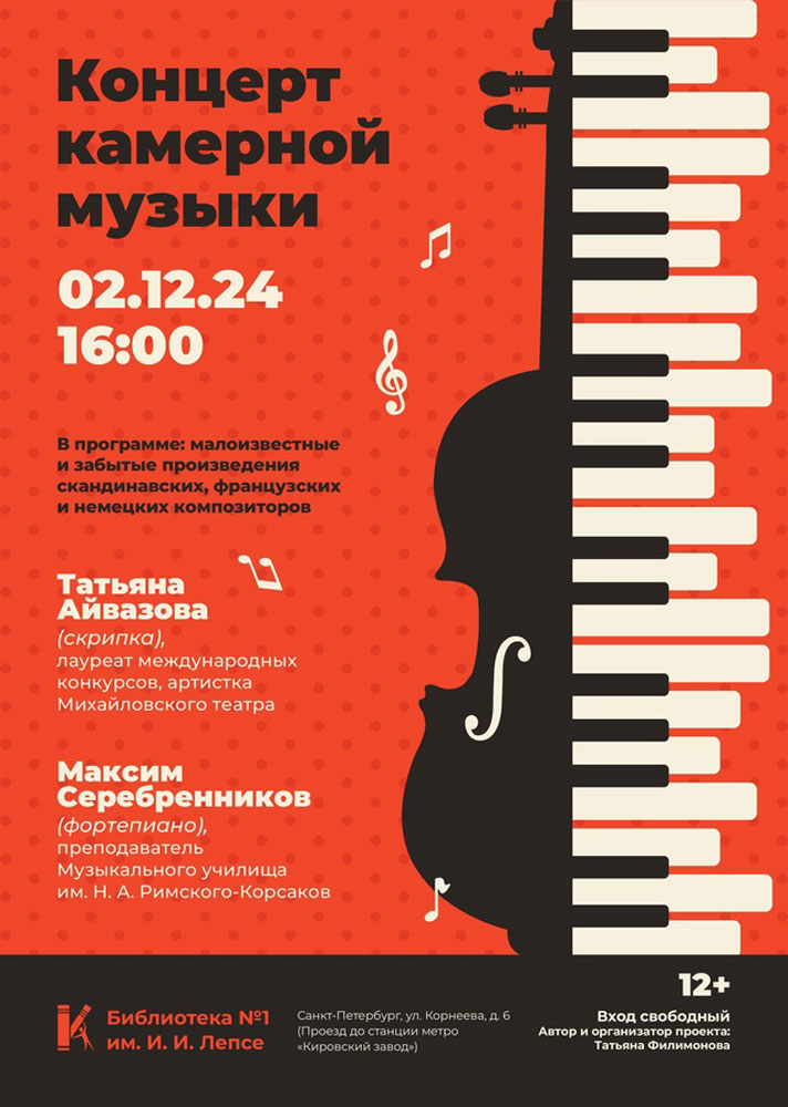 Библиотека №1 им. И. И. Лепсе приглашает на Концерт камерной музыки.