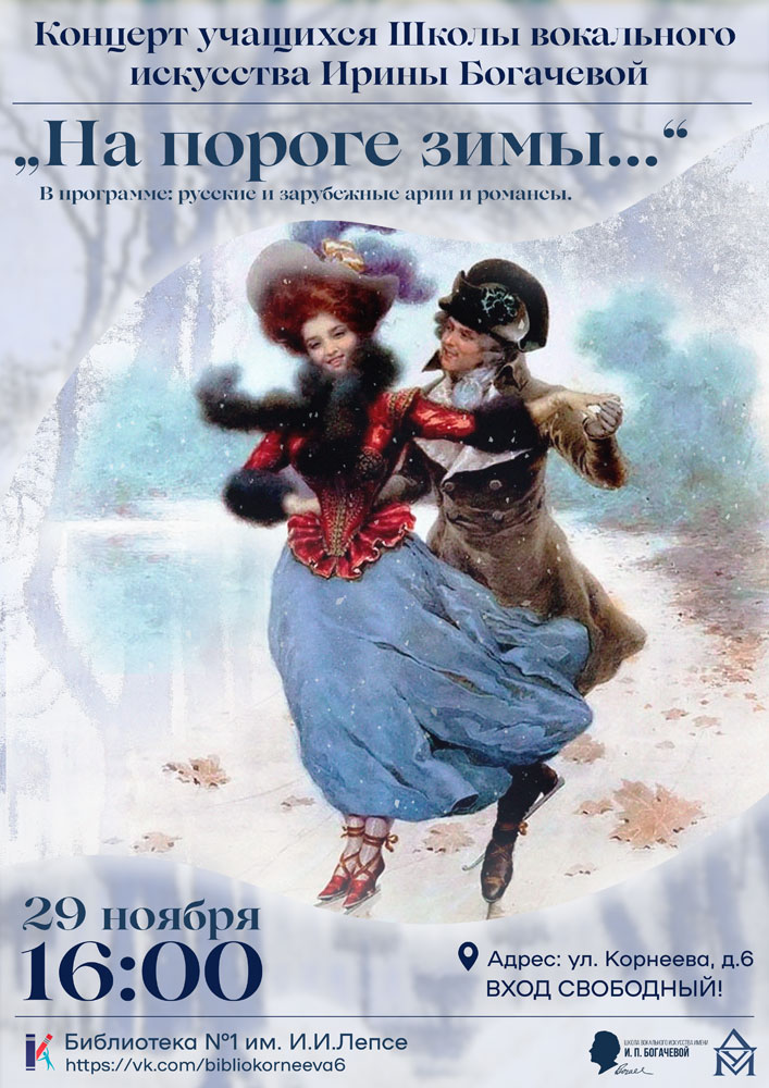 Библиотека №1 им. И. И. Лепсе приглашает на концерт учащихся Школы вокального искусства Ирины Богачевой "На пороге зимы…"