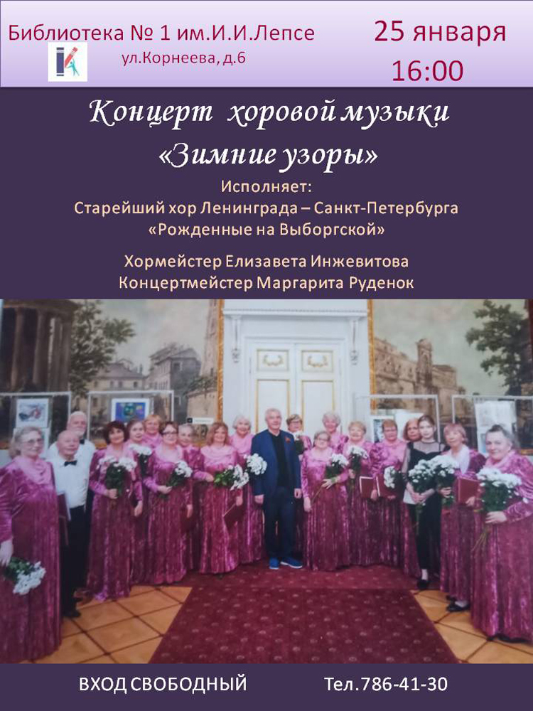 Концерт хоровой музыки "Зимние узоры" в исполнении старейшего хора Ленинграда - Санкт-Петербурга "Рожденные на Выборгской".