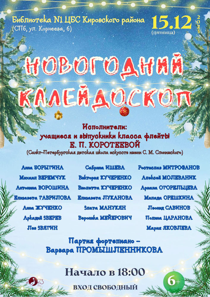 15 декабря в 18.00 Библиотека №1 им. И. И. Лепсе приглашает всех желающих на Концертную программу "Новогодний калейдоскоп".