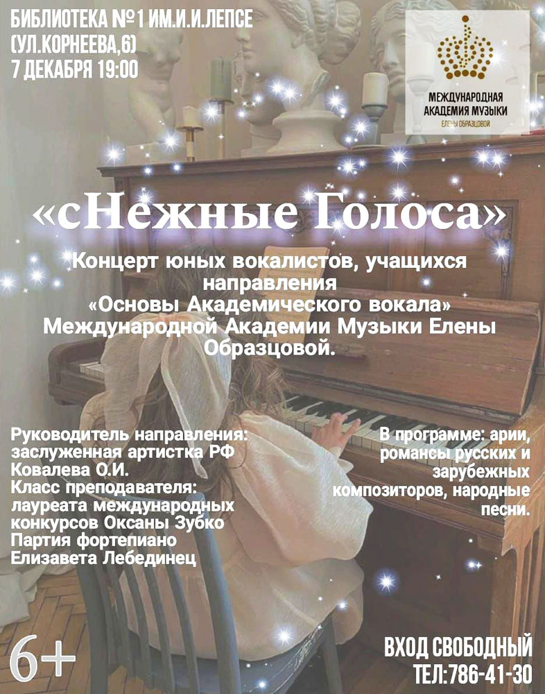 7 декабря в 19.00 Библиотека №1 им. И. И. Лепсе приглашает всех желающих на Концертную программу "сНежные Голоса".