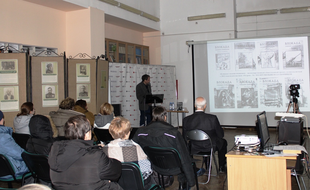 Следующим был рассказ о выставке "Твои герои, Ленинград. Фотография, как документ", недавно открывшейся в ЦРБ имени М. Шолохова. Сотрудник библиотеки А.А. Кулик рассказал об экспозиции собравшей 16 биографий защитников Ленинграда. Ранее биографии этих героев были забыты, либо вообще неизвестны. Но вместе они дают новый интересный материал для понимания того подвига, который совершили оборонявшие Ленинград люди.