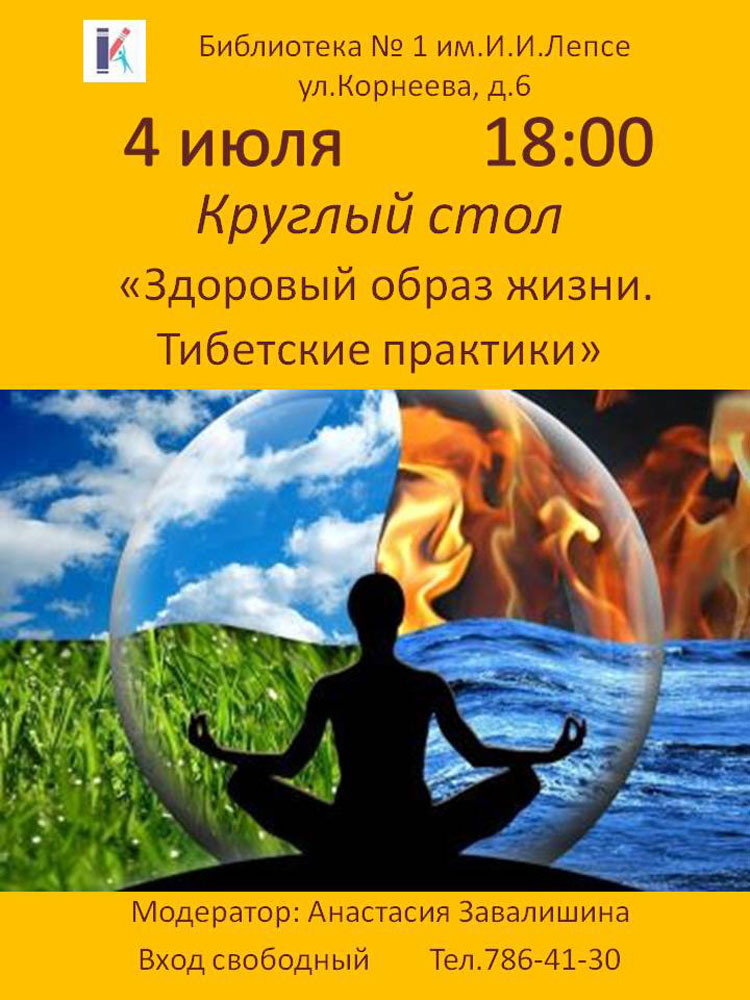 Библиотека №1 им. И. И. Лепсе приглашает на Круглый стол "Здоровый образ жизни. Тибетские практики".