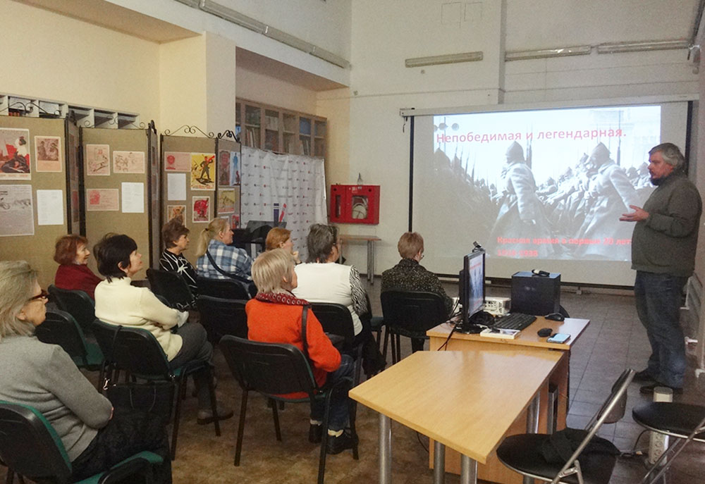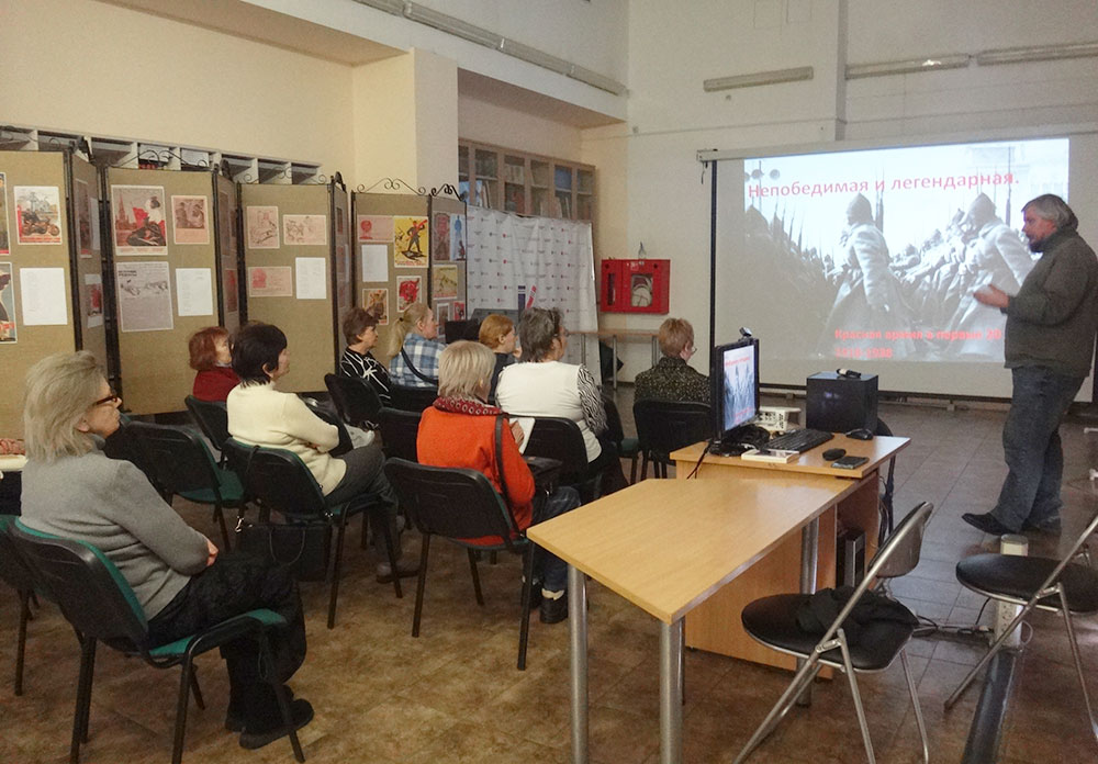 В ходе лекции сотрудник библиотеки Андрей Кулик обсудил с посетителями вопросы, касавшиеся первых лет формирования армии, и почему была выбрана дата 23 февраля. А также были рассмотрены вопросы комплектования, снабжения, питания и обучения бойцов Красной армии. Так на первых этапах вначале 1920-х годов в программу подготовки входили русский язык, правописание и математика.