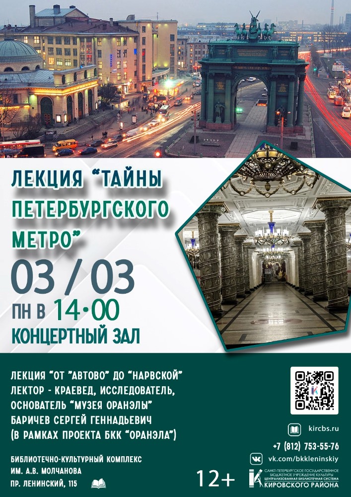 Приглашаем всех любителей истории Санкт-Петербурга на уникальную лекцию "От “Автово" до "Нарвской"", посвященную тайнам и загадкам метрополитена Северной столицы.