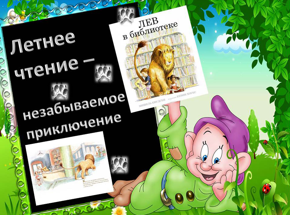 Литературная пятиминутка "Летнее чтение - незабываемое приключение" - Библиоканикулы с книгой М. Кнудсен "Лев в библиотеке"
