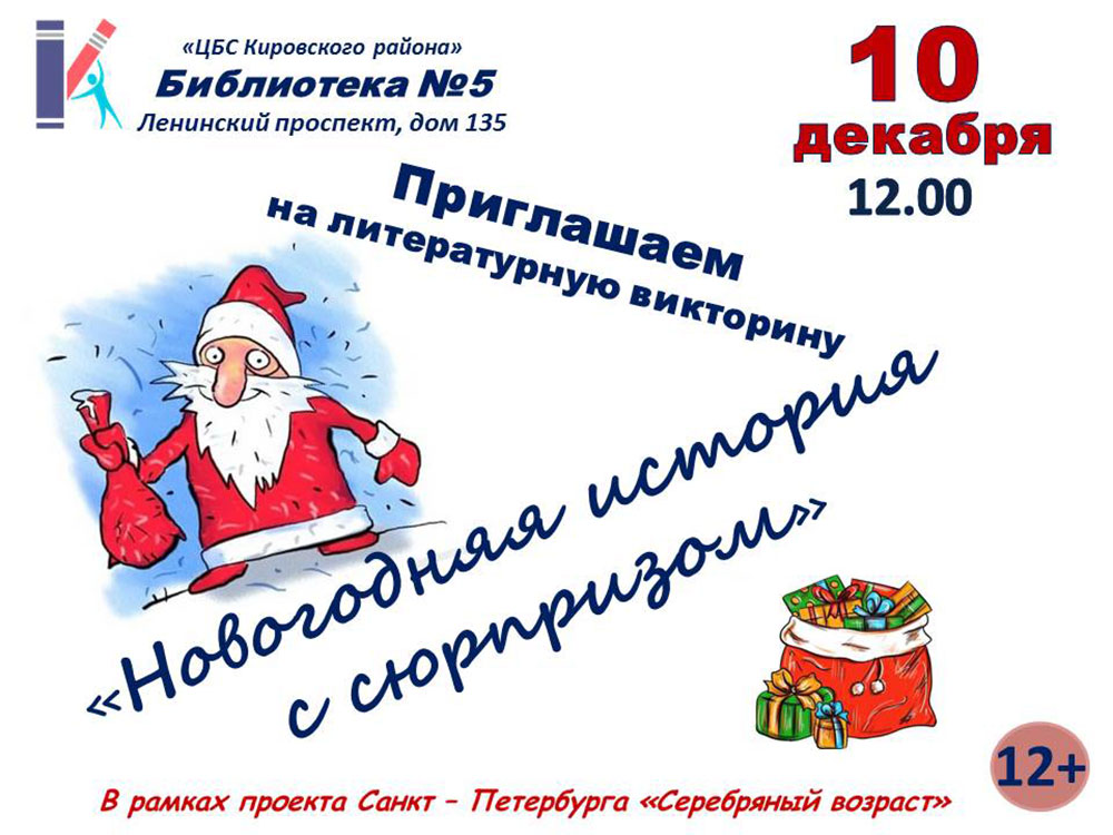 В рамках проекта Санкт-Петербурга "Серебряный возраст" состоится Литературная викторина "Новогодняя история с сюрпризом".