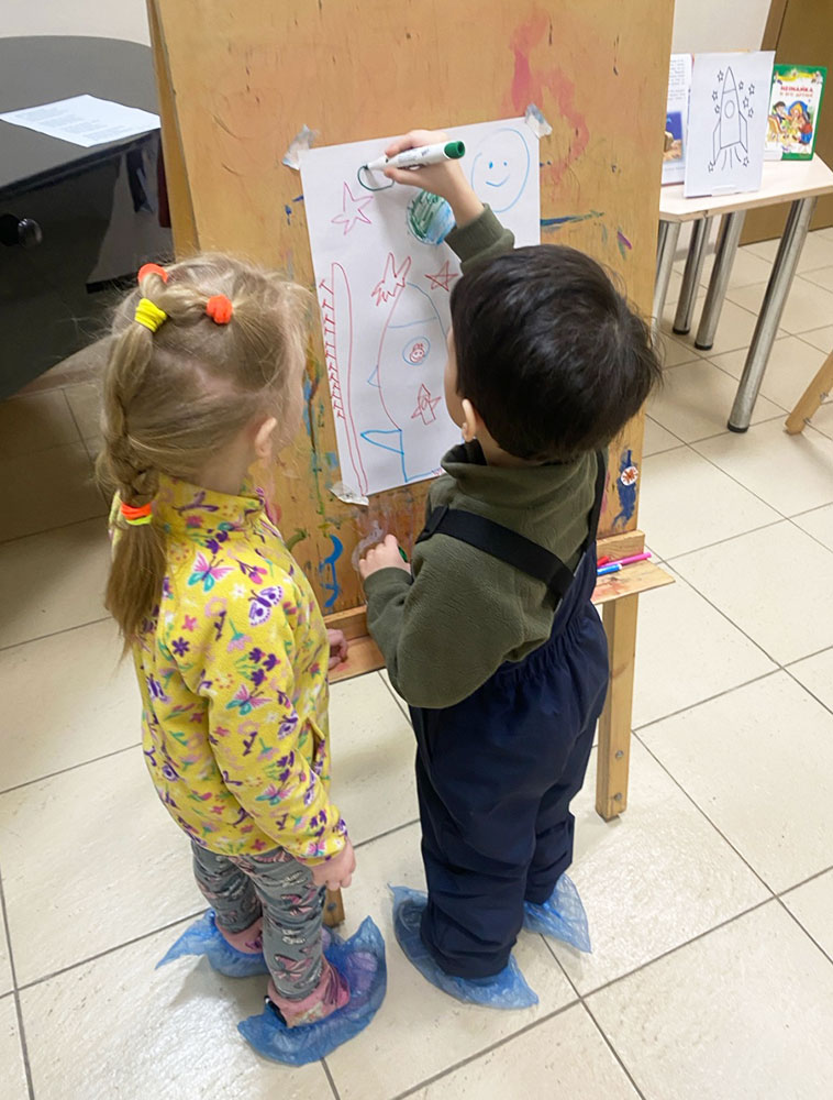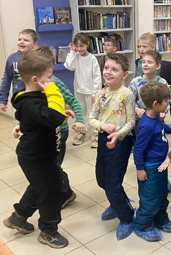 После просмотра презентации "День рождения книги" вся команда космического корабля "прилунилась" и приняла участие в конкурсе "Танец невесомости". Далее храбрые земляне соревновались в искусстве изображения ракеты, доставившей всех на Луну. Просмотр фрагментов мультипликационного фильма "Незнайка на Луне" порадовал юных покорителей космоса.