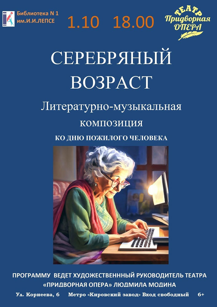 1 октября в 18:00 Библиотека № 1 им. И. И. Лепсе приглашает на литературно-музыкальную композицию "Серебряный возраст", посвященную Дню пожилого человека.