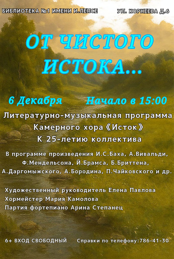 Приглашаем на литературно-музыкальную программу "От чистого истока..." к 25-летию Камерного хора "Исток".