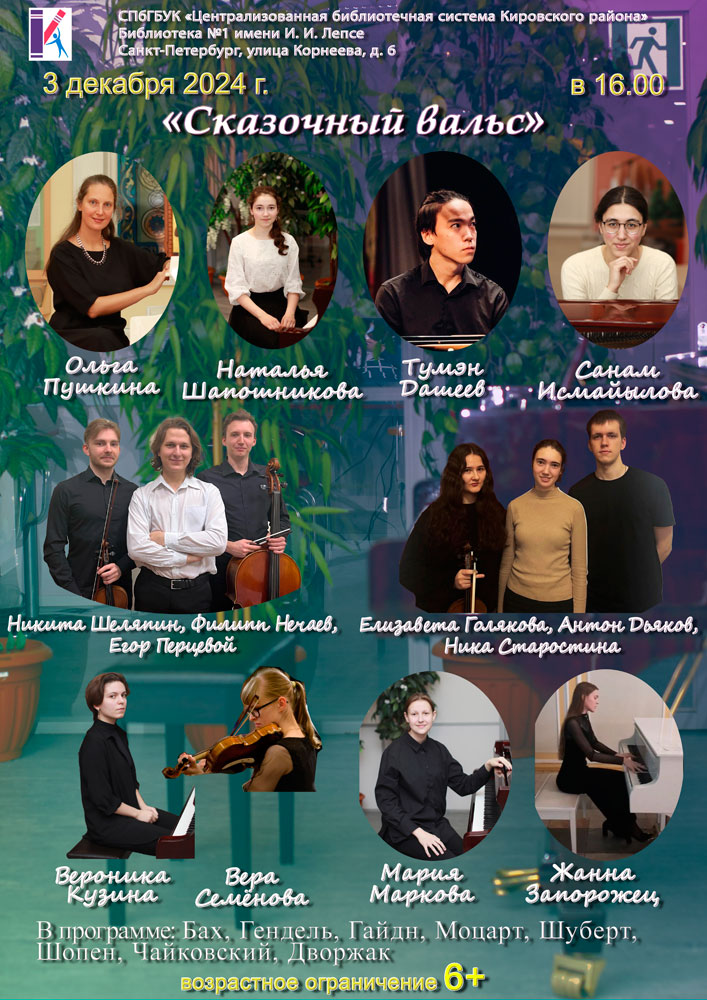 Библиотека №1 им. И. И. Лепсе приглашает на Литературно-музыкальную программу "Сказочный вальс".