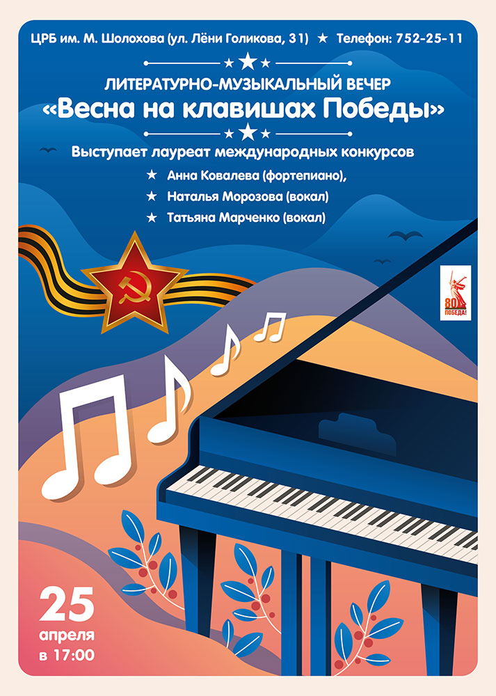 В ЦРБ им. М. Шолохова состоится Литературно-музыкальная программа "Весна на клавишах Победы".
