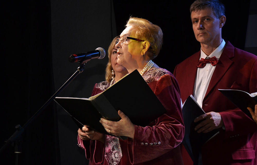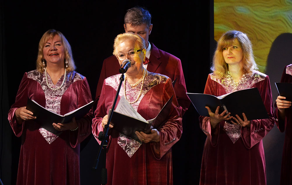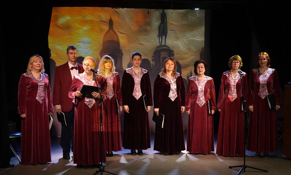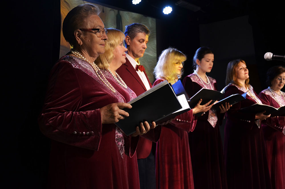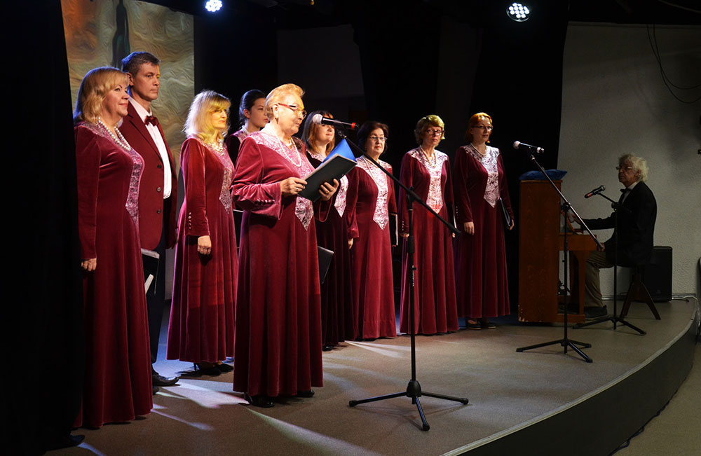 Вокальный ансамбль "Серебряный родник", под управлением Е. В. Полтавского, поздравил с праздником зрителей. Стихи и песни о Санкт-Петербурге, о Родине, о России звучали в этот вечер.