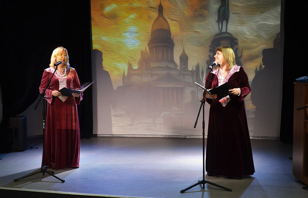 В исполнении солистов ансамбля Людмилы Михайловой и Татьяны Луппиной прозвучали произведения петербургских композиторов: Александра Колкера - романс Лизы из мюзикла "Свадьба Кречинского" и Александра Дольского - "Удивительный вальс". Особенный восторг вызвало попурри из песен композитора Андрея Петрова.