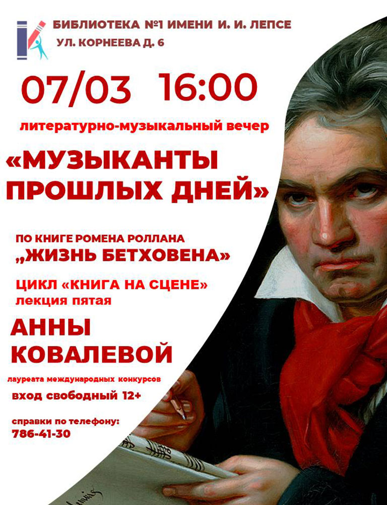 Библиотека №1 им. И. И. Лепсе приглашает на Литературно-музыкальный вечер "Музыканты прошлых дней".