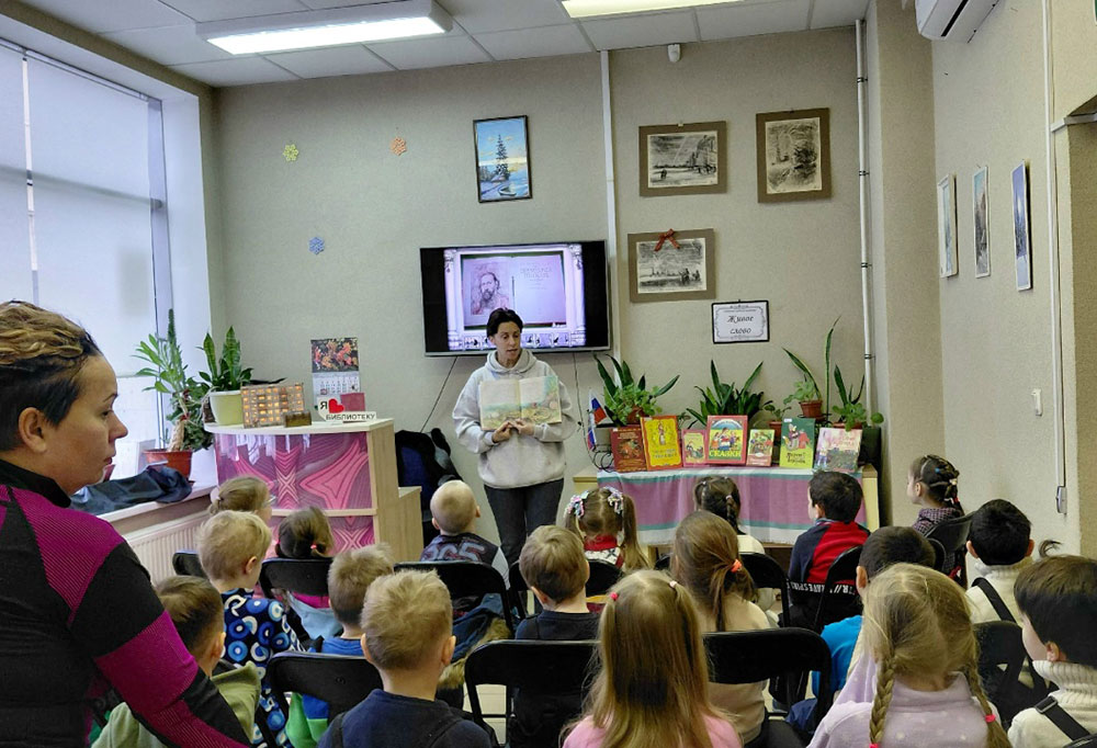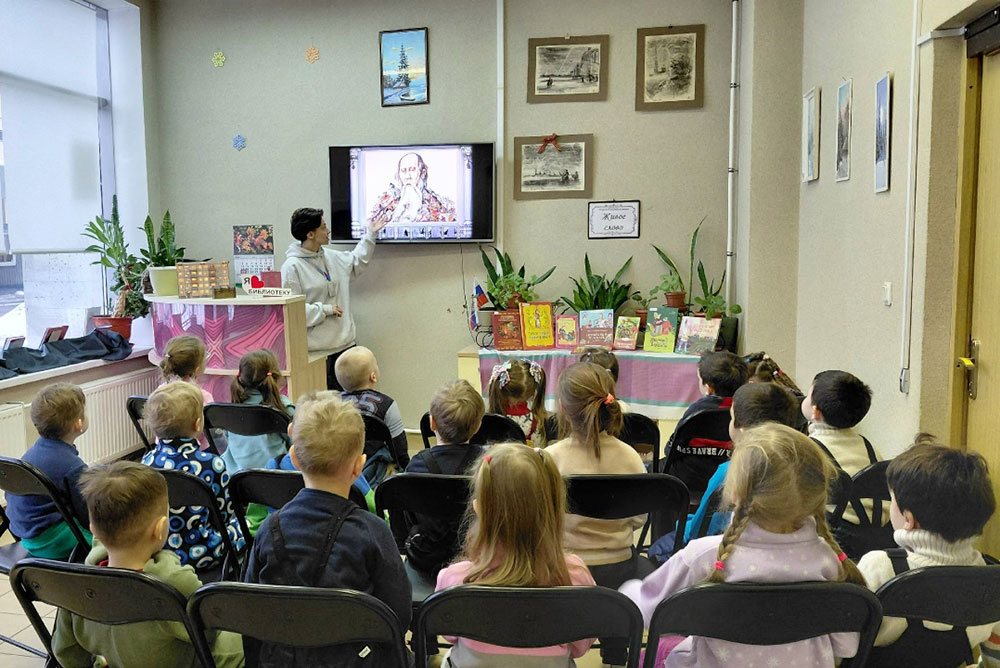 Юных читателей из дошкольных учреждений Кировского района ожидала информационная презентация "Властелин тайных смыслов", которая отправила гостей мероприятия в путешествие по знакомству с писателем и загадками его творчества, познакомила с сюжетом и героями сказки "Премудрый пискарь".