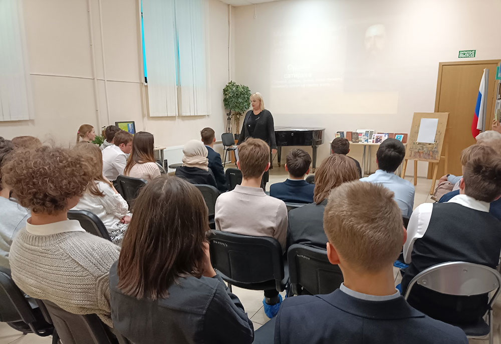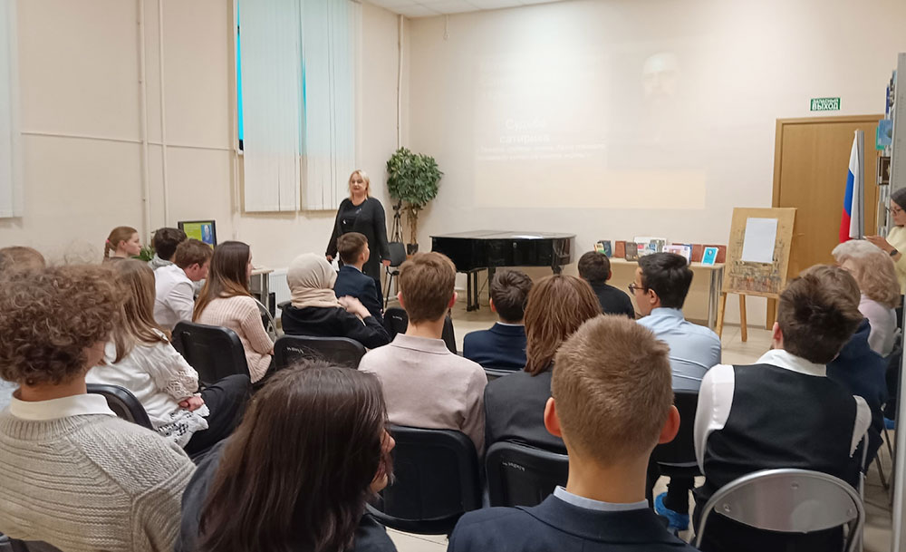 Учащиеся старших классов изучали литературный портрет одного из лучших русских писателей XIX века. После просмотра информационной презентации "Судьба сатирика" и фрагментов мультипликационных фильмов, по мотивам сказок Салтыкова-Щедрина, ребята рассказали о своих впечатлениях от знакомства с творчеством писателя.