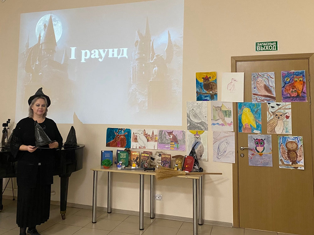 После просмотра информационной презентации "Волшебный мир Хогвартса", по книгам Дж. К. Роллинг, все желающие смогли принять участие в викторине по роману "Гарри Поттер и философский камень". Выставка сов, созданная учениками художественных студий "Сова" и "Творческая мастерская", никого из ребят не оставила равнодушными и стала прологом к мастер-классу "Философская Сова".