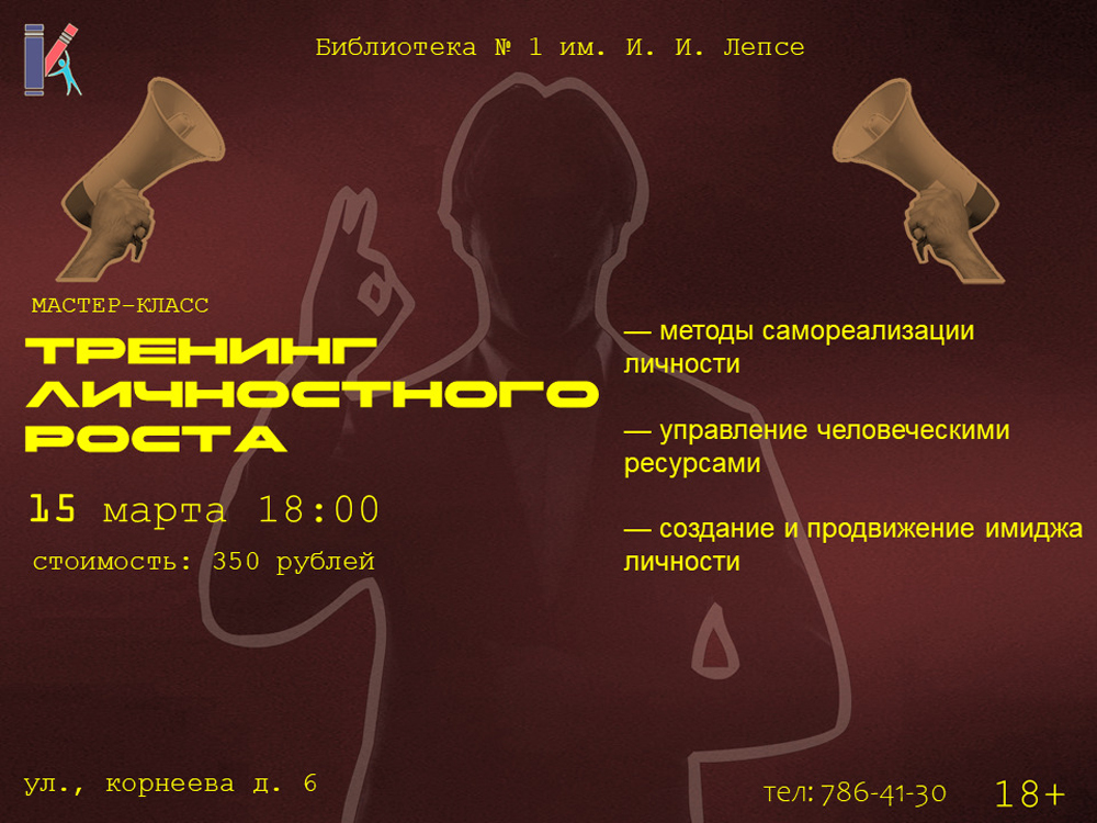 Библиотека №1 им. И. И. Лепсе приглашает на Мастер-класс "Тренинг личностного роста".