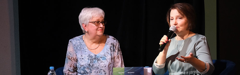 Говоря о синтезе поэзии с другими видами искусства, ведущие обратились к проекту Ирины Нэртис "СтихоВидение", созданному в сотворчестве с профессиональной командой - режиссёром Марией Афанасьевой и оператором Максимом Ефановым. Это короткие поэтические фильмы, где стихотворение обретает визуальный ряд и музыкальное сопровождение, После просмотра видеороликов Ирина Вадимовна подчеркнула, насколько важно "замедлиться" или "сделать остановку", чтобы обратить свой взор на мир вокруг, на его красоту и равновесие, и обрести внутреннюю гармонию. Эту мысль поддержала и добрый друг ЦБС Кировского района, писатель, поэт, переводчик Наталья Алексеева, присутствовавшая на вечере. В своем выступлении она призналась, что находится под большим впечатлением от "Стиховидения" как уникального жанра, очень подробного и тонкого. Наталья Алексеева отметила, что такой подход открывает новые грани поэтического текста и позволяет говорить о поэзии на языке современного зрителя, не теряя при этом глубины и искренности.