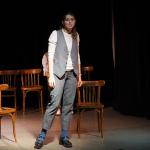 Спектакль точно следует воле автора: он исполняется без декораций и реквизита, а действие ведёт помощник режиссёра, то останавливая актёров на сцене и делая необходимые ремарки, то прокручивая время вперёд на десятилетия.