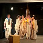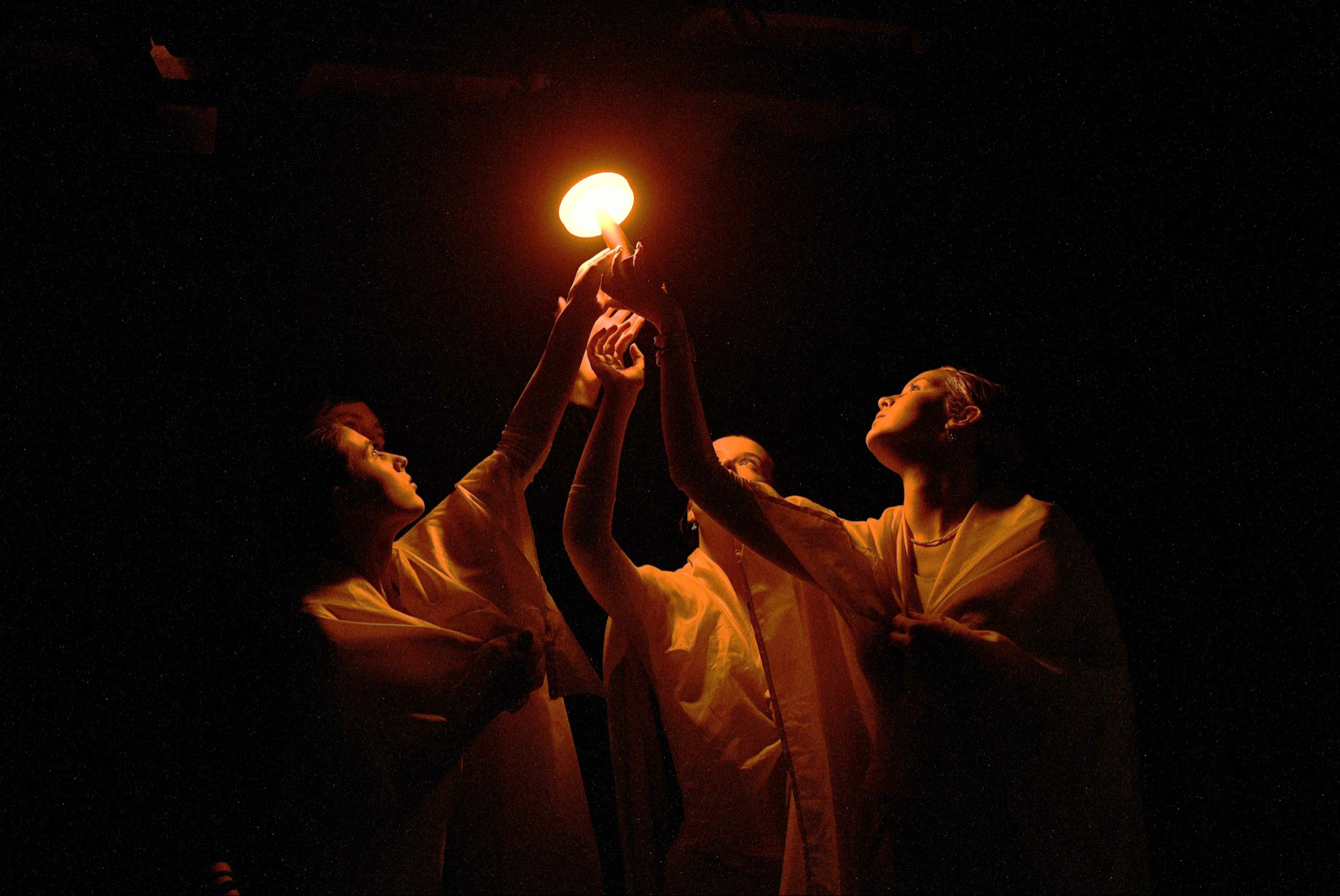 Юные актёры играют сдержанно и немного отстранённо, но это оправдывается жанром. Полулегендарное, полусказочное повествование и не требует психологизма и аффектных переживаний. И в финале, когда над книгой склоняются юные девичьи головки, а на сцену вдруг выходят герои, один за другим, мягким светом волшебной лампы светятся глаза юношей и девушек. Без сомнений, этот свет подарило им волшебство театра.