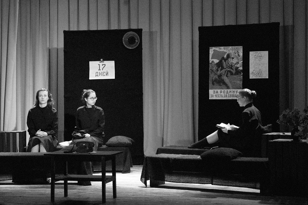 Спектакль минского театра "Потешник" по пьесе современного драматурга Т. Дрозда, посвящённой Великой Отечественной войне, строгий и сдержанный. Создателями и юными актрисами найден верный тон для разговора на непростую тему.