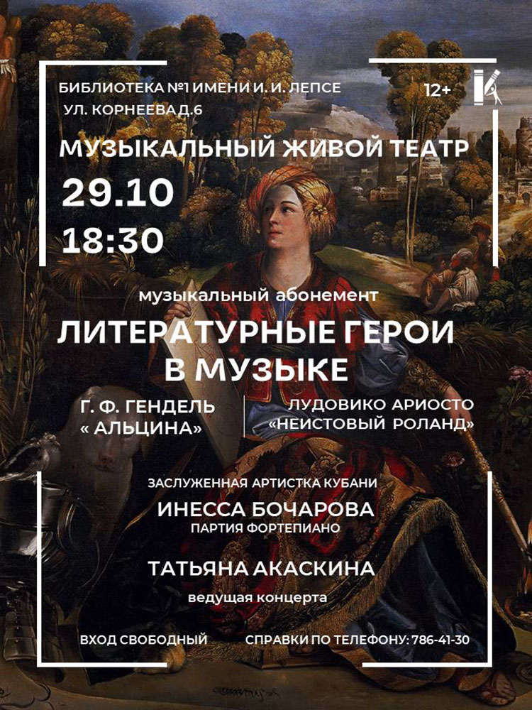 В программе Г. Ф. Гендель "Альцина" и Лудовико Ариосто "Неистовый Роланд".