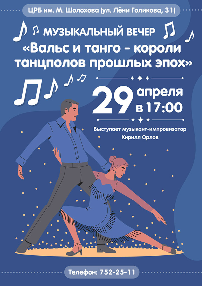 В ЦРБ им. М. Шолохова состоится Музыкальный вечер "Вальс и танго - короли танцполов прошлых эпох".