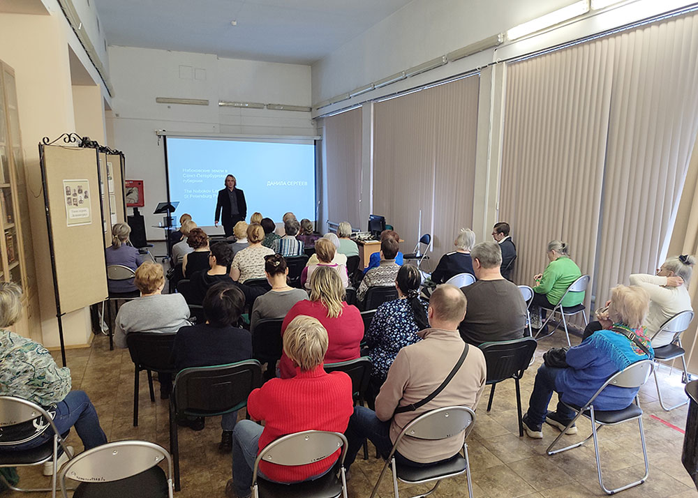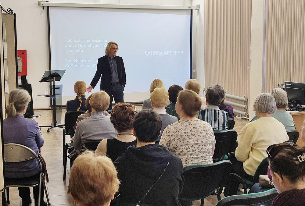Данила Игоревич рассказал о том, как эти земли вдохновляли Владимира Владимировича Набокова, как воспоминания о них отражены в его литературе. Особое место было уделено рассказу о семье писателя, и о том, как члены семьи вспоминали и помогали вспомнить писателю некоторые детали. С интересом аудитория слушала выдержки из воспоминаний тёти Владимира Владимировича, Надежды Дмитриевны Набоковой, которая опубликовала их в Англии на английском языке в 1930-е годы. Переводом этих воспоминаний сейчас занимается автор лекции.