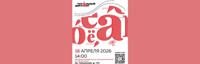 В этом году библиотека присоединяется к ежегодной просветительской акции - Тотальному диктанту, который состоится 18 апреля в 14.00 по адресу: Ленинский пр., д. 115.