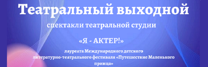 Проект "Театральный выходной" родился после успешного проведения I Международного детского литературно-театрального фестиваля "Путешествие Маленького принца" и продолжает радовать любителей сцены новыми спектаклями и встречами.