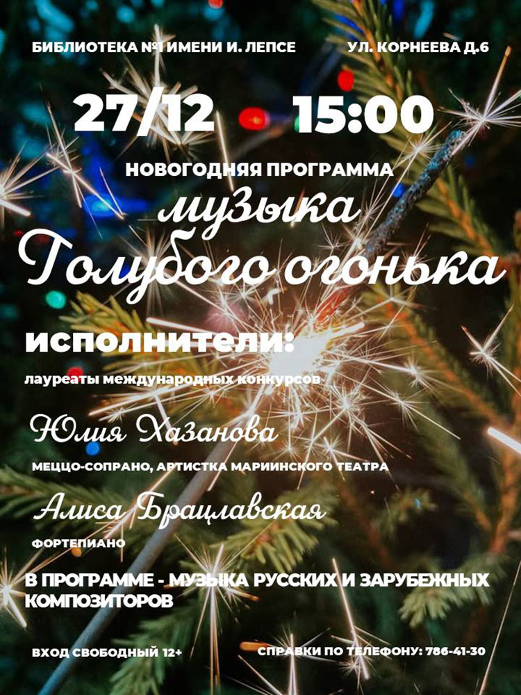 Приглашаем на Новогоднюю программу "Музыка Голубого огонька". В программе музыка русских и зарубежных композиторов.