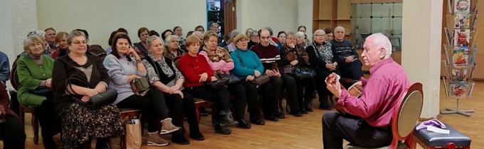29 января в Библиотечно-культурном комплексе им. А. В. Молчанова (Ленинский проспект, 115) в рамках проекта "Театральный Петербург" состоялась творческая встреча с актёром театра и кино, актёром Театра имени Ленсовета, заслуженным артистом России Александром Марковичем Новиковым.