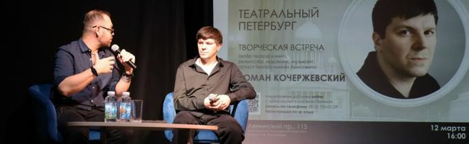 12 марта 2026 года в Библиотечно-культурном комплексе им. А. В. Молчанова (Ленинский пр., д. 115) в рамках проекта "Театральный Петербург" состоялась творческая встреча с актёром театра и кино, режиссёром, художником, музыкантом, артистом Театра имени Ленсовета Романом Алексеевичем Кочержевским.