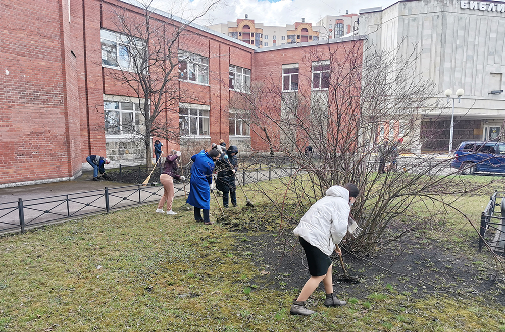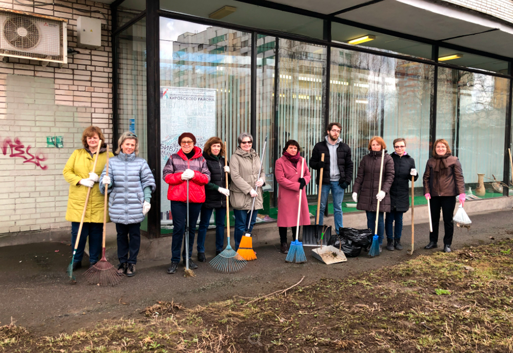 Общегородской субботник в библиотеках Кировского района Главная - Новости - Общегородской субботник в библиотеках Кировского района 26.04.2021 В Санкт-Петербурге в последние выходные апреля прошел традиционный общегородской субботник. День благоустройства города не обошли стороной и сотрудники ЦБС Кировского района, выйдя на уборку территорий вокруг библиотек. Фотогалерея Поделитесь: