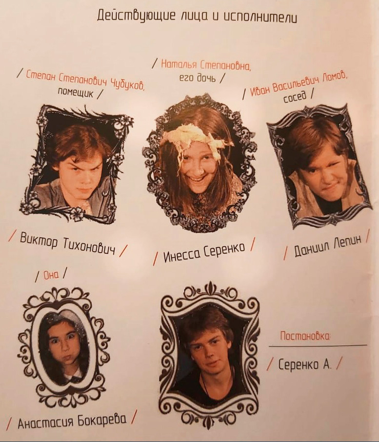 В спектакле заняты: Виктор Тихонович, Инесса Серенко, Даниил Лепин, Анастасия Бокарева.
